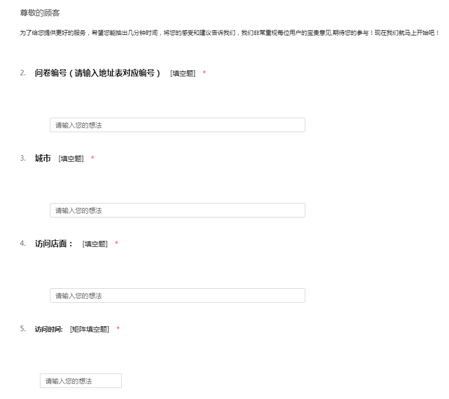 为了给您提供更好的服务,希望您能抽出几分钟时间,将您的感受和建议告诉我们,我们非常重视每位用户的宝贵意见,期待您的参与!现在我们就马上开始吧!