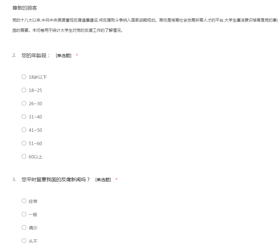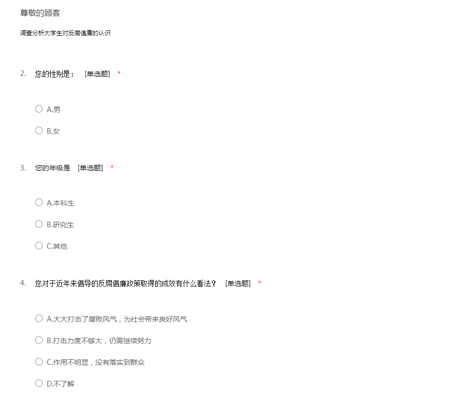 反腐倡廉调查问卷