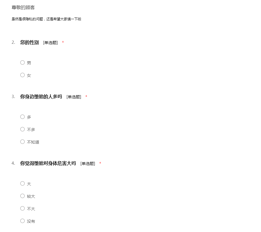 虽然是很隐私的问题,还是希望大家填一下啦