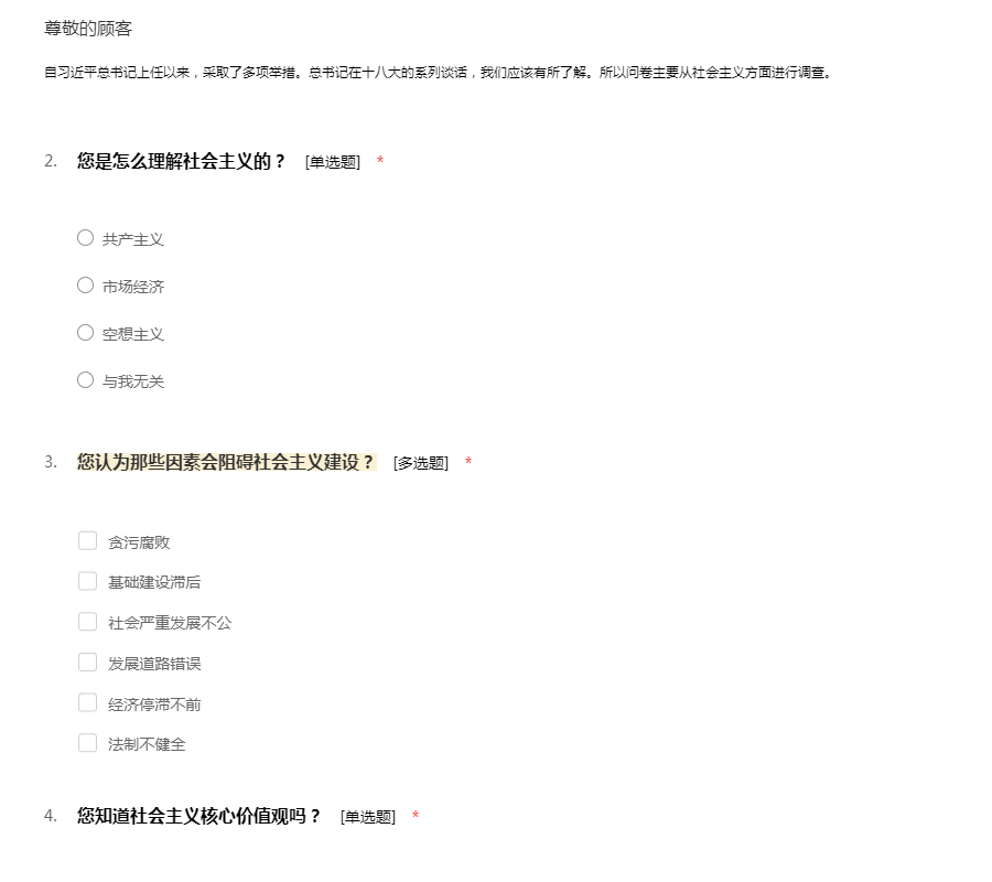 关于社会主义的调查问卷