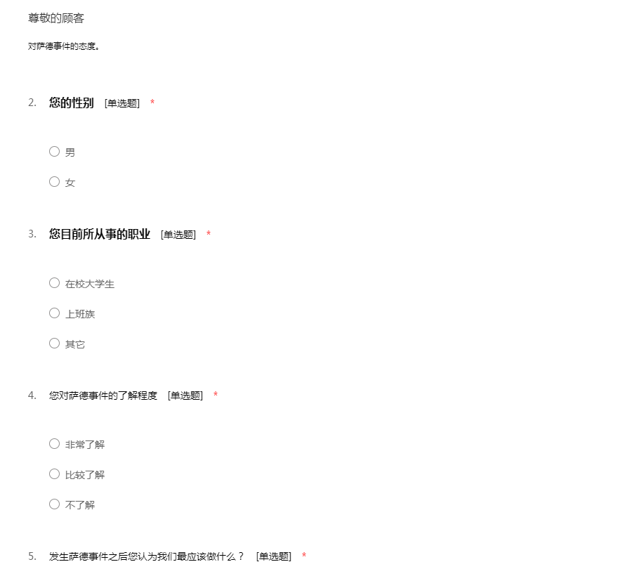 关于萨德问题的调查问卷