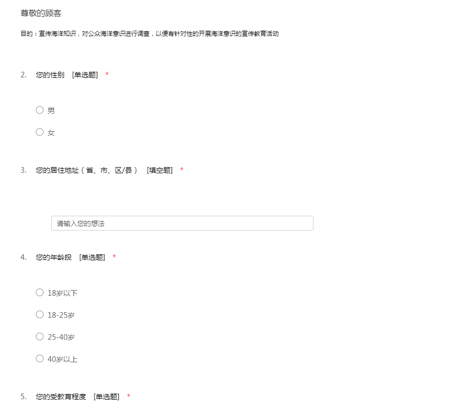 目的:宣传海洋知识,对公众海洋意识进行调查,以便有针对性的开展海洋意识的宣传教育活动