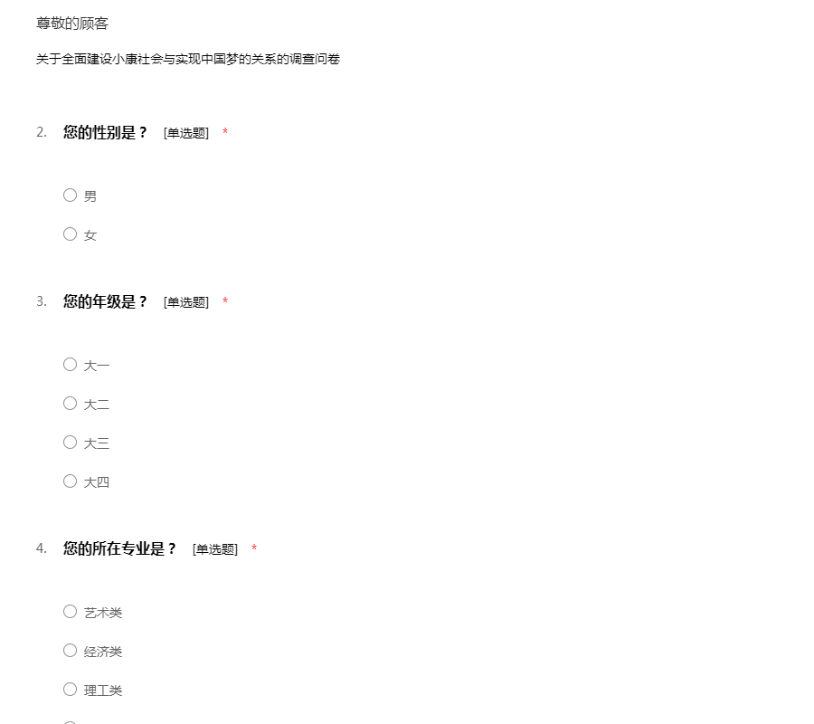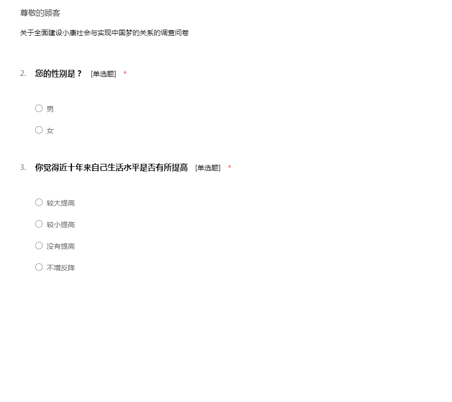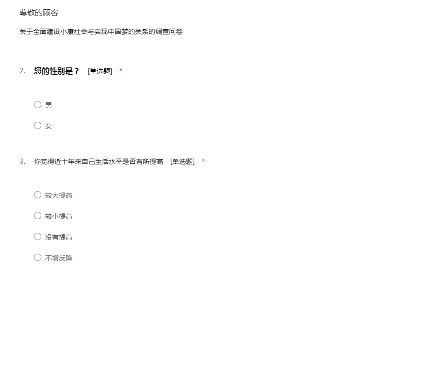 关于全面建设小康社会的调查问卷