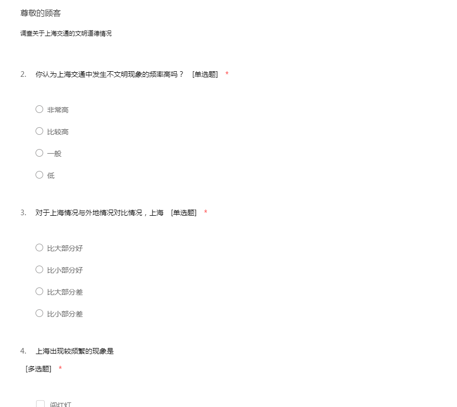 上海现代交通文明道德素养调查问卷