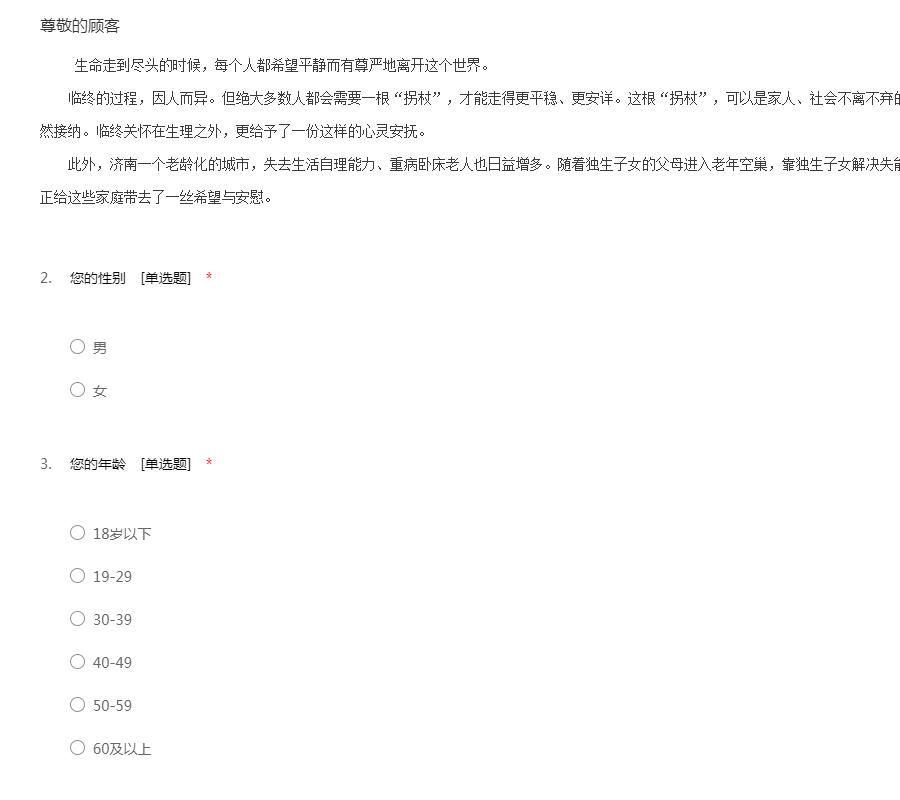关于临终关怀的社会调查问卷