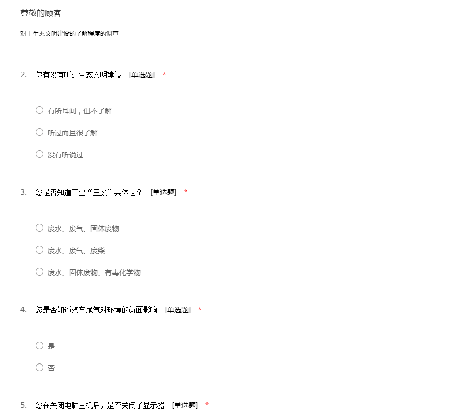 对于生态文明建设的了解程度的调查