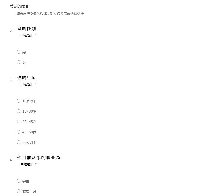 调查出行交通的选择,对交通发展趋势做估计