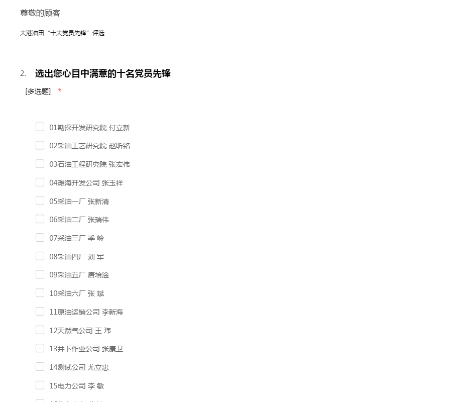 大港油田“十大党员先锋”评选