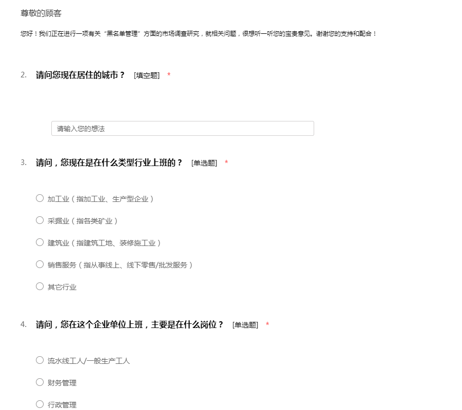 企业黑名单管理调研问卷(问卷测试用的,不动)