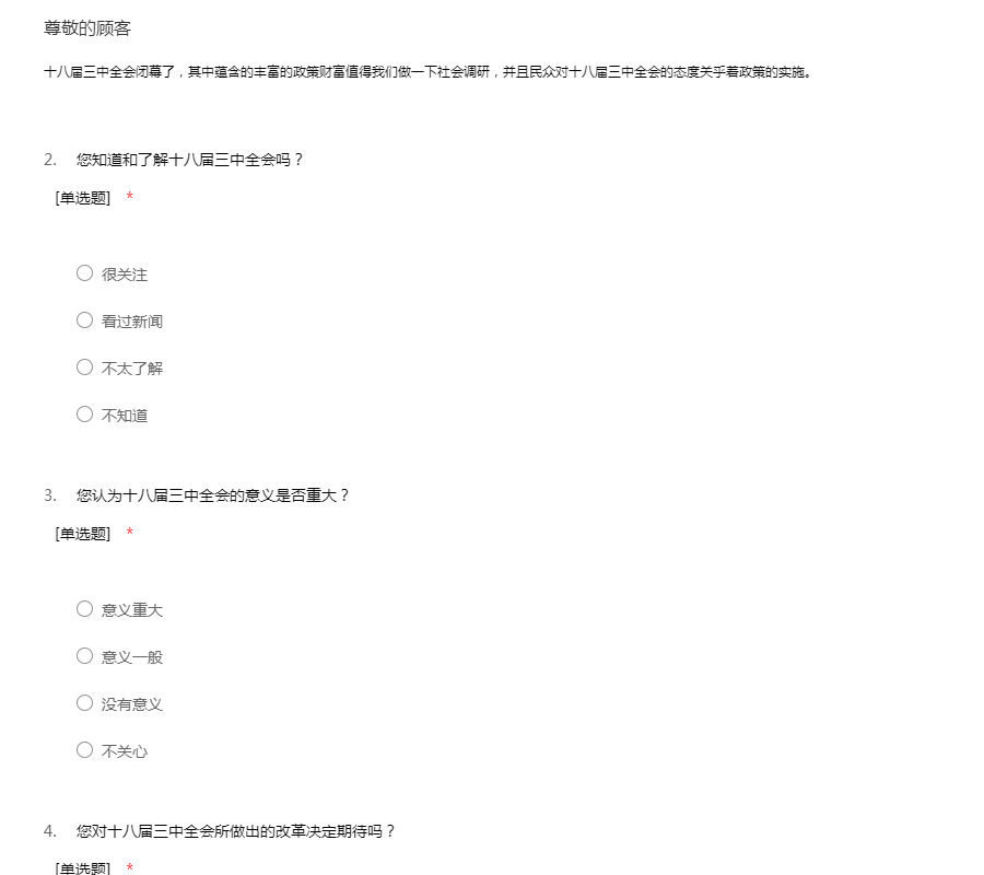十八届三中全会闭幕了,其中蕴含的丰富的政策财富值得我们做一下社会调研,并且民众对十八届三中全会的态度关乎着政策的实施。