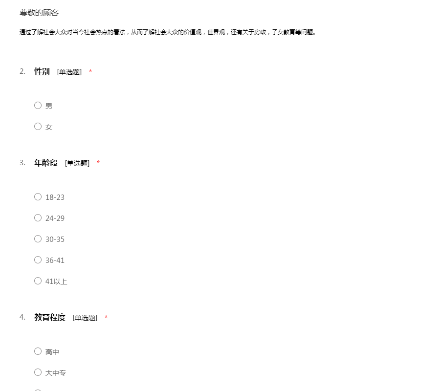 通过了解社会大众对当今社会热点的看法,从而了解社会大众的价值观,世界观,还有关于房政,子女教育等问题。