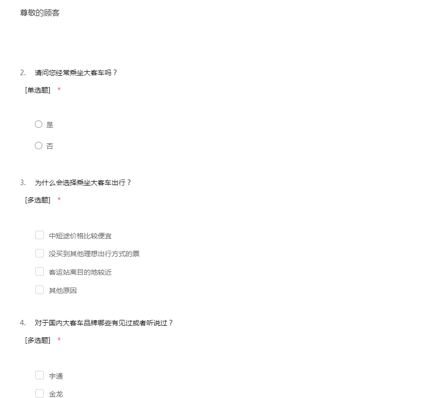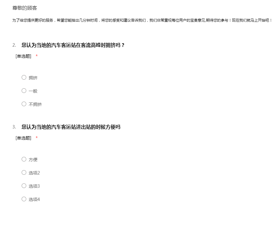 汽车客运站设计调查问卷
