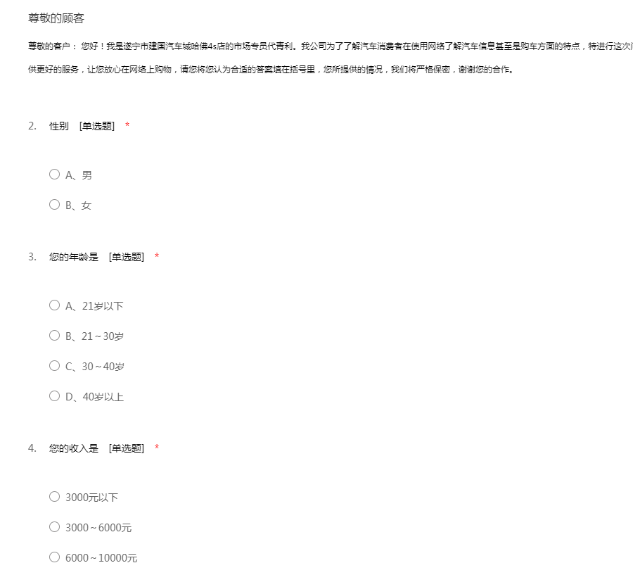 汽车市场调查问卷