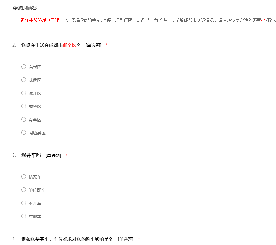 成都市停车位相关问题调查