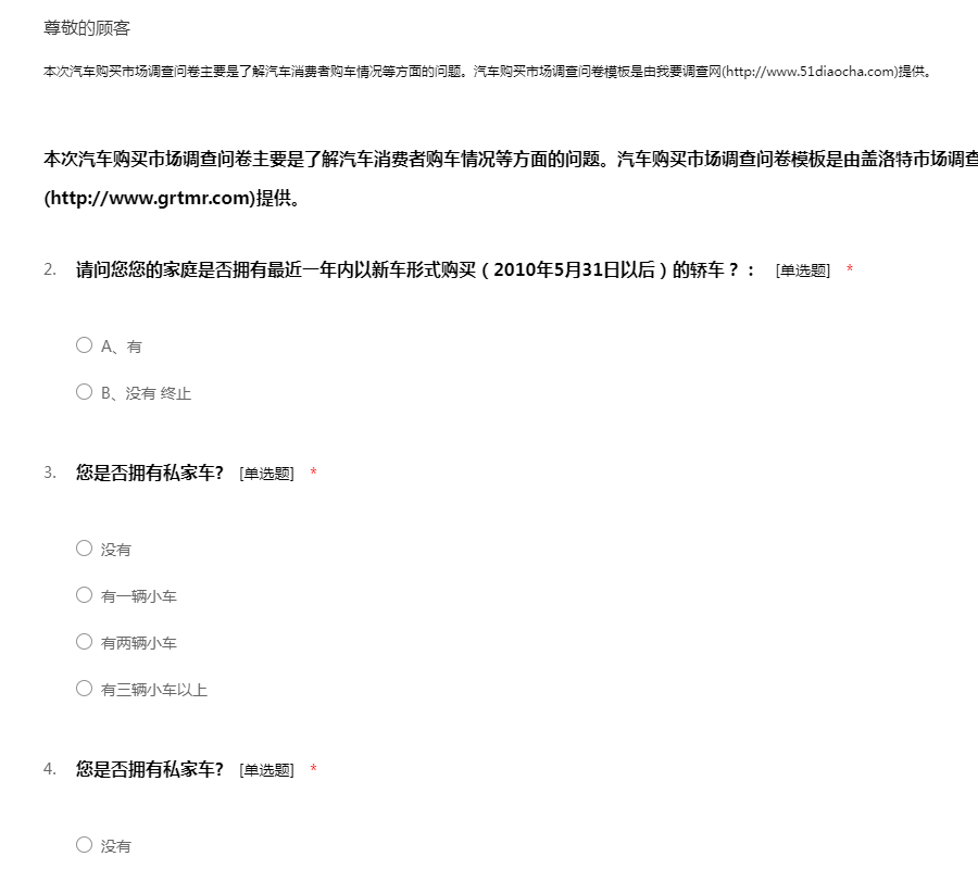 本次汽车购买市场调查问卷主要是了解汽车消费者购车情况等方面的问题。
