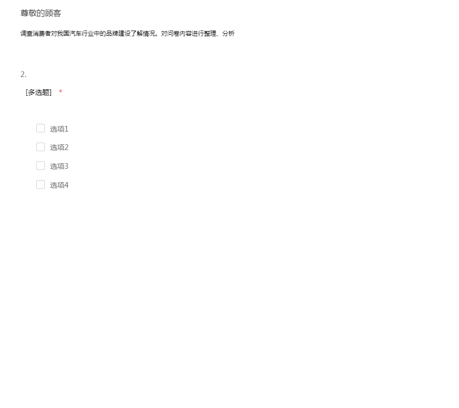 调查消费者对我国汽车行业中的品牌建设了解情况。对问卷内容进行整理、分析