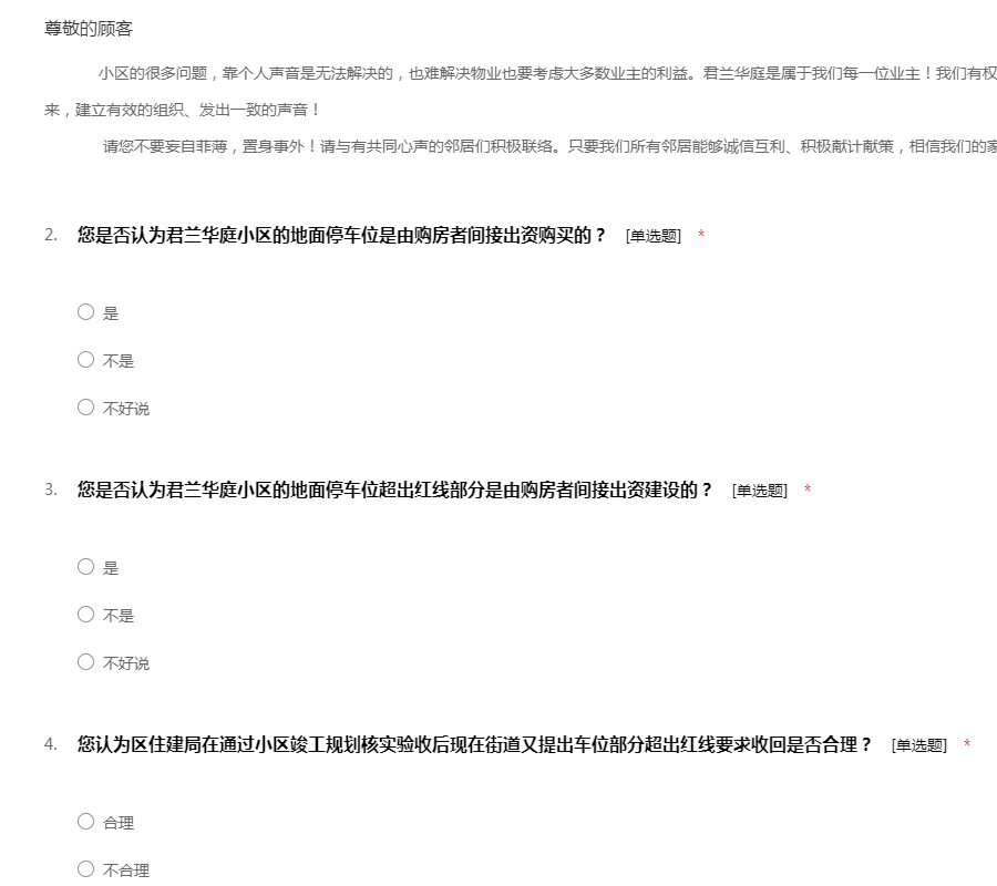 小区的很多问题,靠个人声音是无法解决的,也难解决物业也要考虑大多数业主的利益。君兰华庭是属于我们每一位业主!我们有权利、有义务为了这个共同的家园团结起来,建立有效的组织、发出一致的声音! 请您不要妄自菲薄,置身事外!请与有共同心声的邻居们积极联络。只要我们所有邻居能够诚信互利、积极献计献策,相信我们的家园会更加美丽,我们的生活会更加舒心!