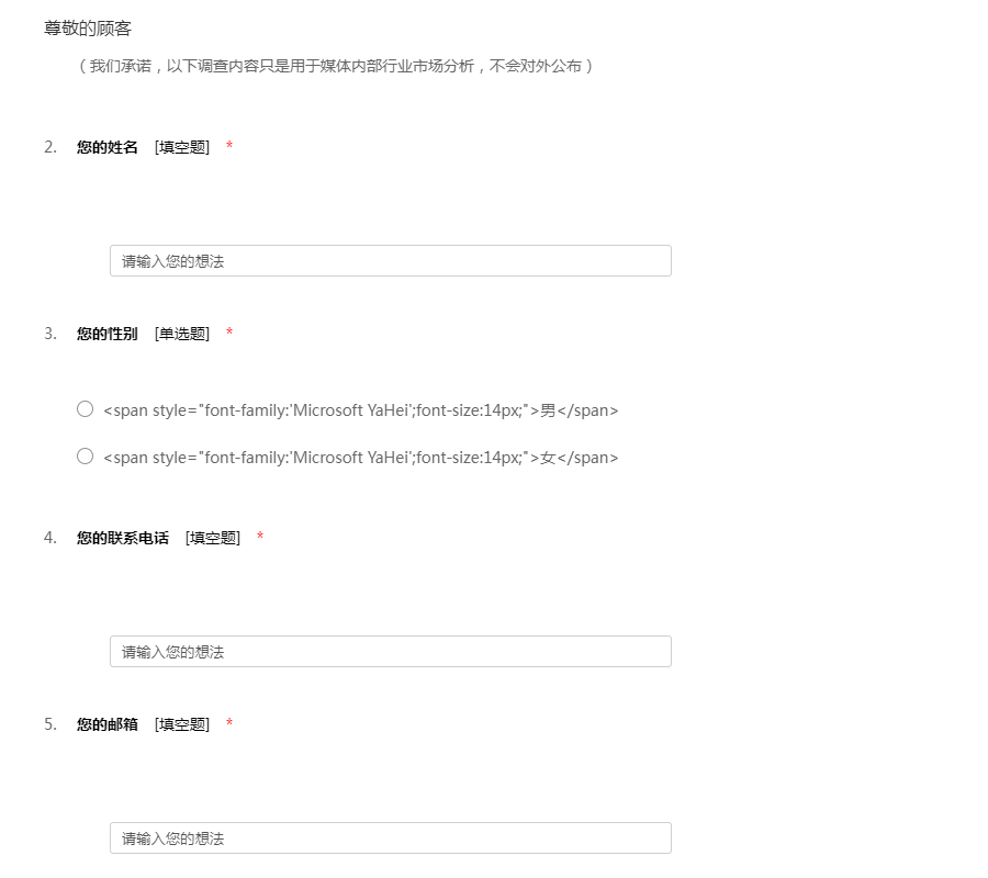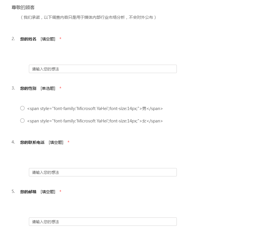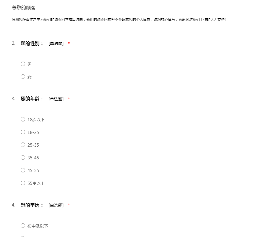 感谢您在百忙之中为我们的调查问卷抽出时间,我们的调查问卷将不会透露您的个人信息,请您放心填写,感谢您对我们工作的大力支持!