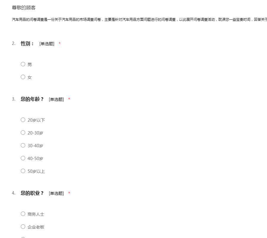 汽车用品的问卷调查是一份关于汽车用品的市场调查问卷,主要是针对汽车用品方面问题进行的问卷调查,以此展开问卷调查活动,耽误您一些宝贵时间,回答关于汽车用品的问卷调查,谢谢您的合作。