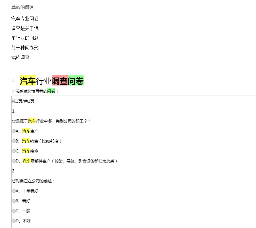 汽车专业问卷调查是关于汽车行业的问题的一种问卷形式的调查