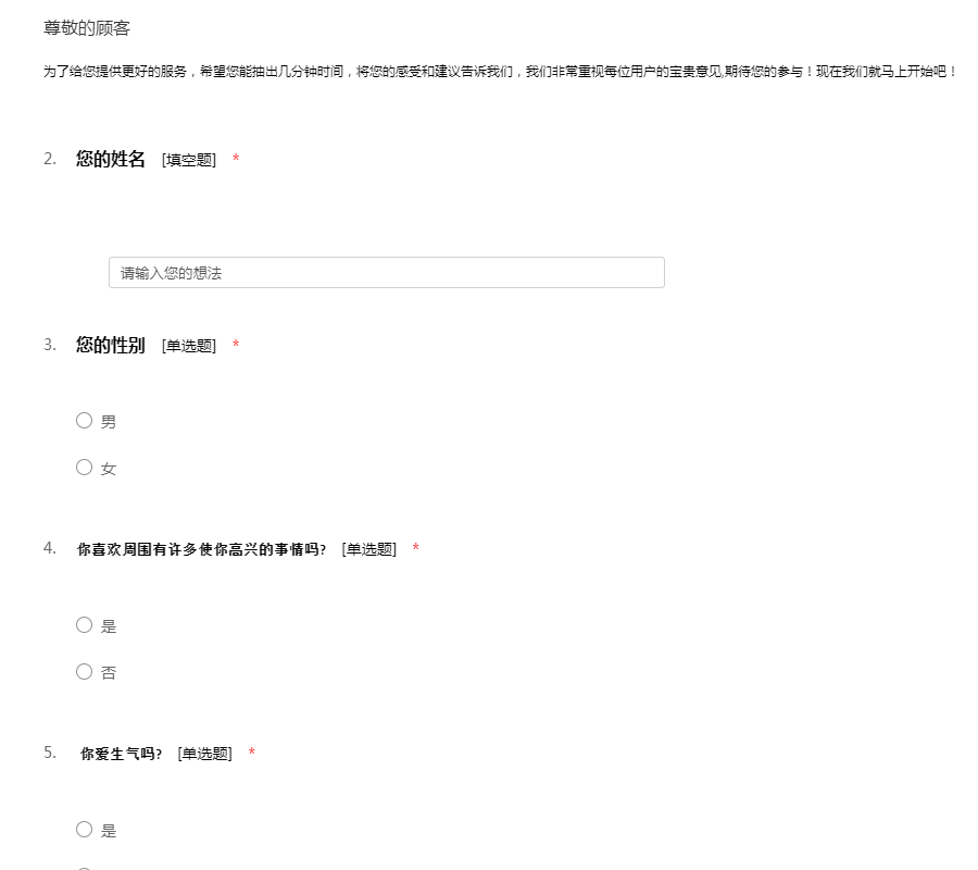 为了给您提供更好的服务,希望您能抽出几分钟时间,将您的感受和建议告诉我们,我们非常重视每位用户的宝贵意见,期待您的参与!现在我们就马上开始吧!