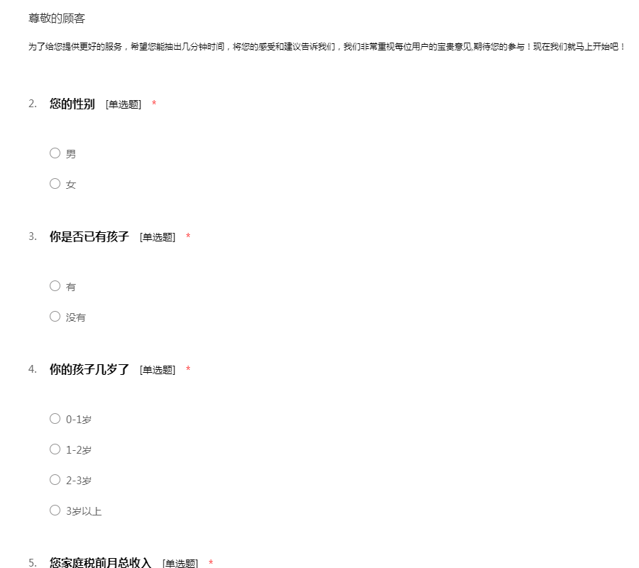 互联网母婴服务调查问卷
