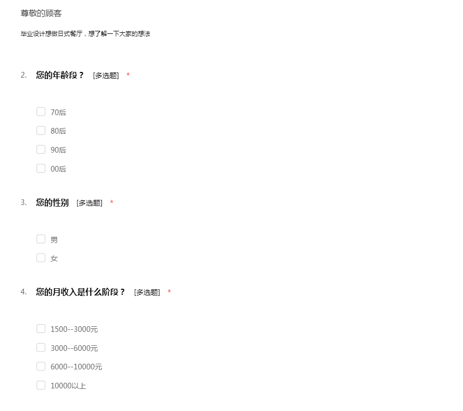 Western food is more and more into our life, Chinese and western diet cultures are different.Therfore the market questionnaire based on cultural differences of Chinese and western dietary survey.