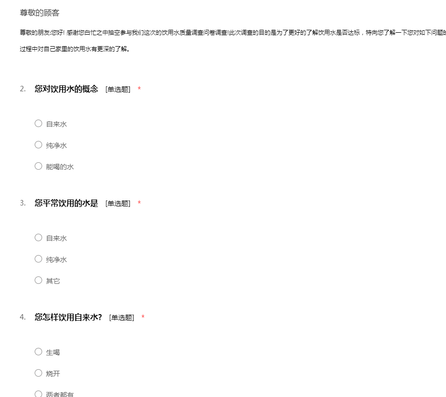 饮用水质量调查问卷