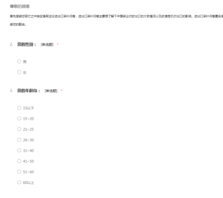 进出口茶叶问卷