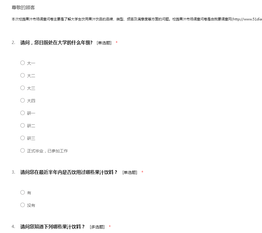 校园果汁市场调查问卷