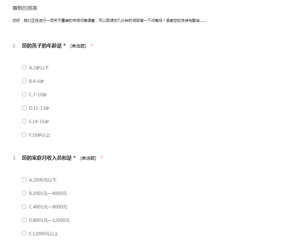 您好,我们正在进行一项关于童装的市场问卷调查,可以耽误您几分钟时间回答一下问卷吗?感谢您的支持与配合……