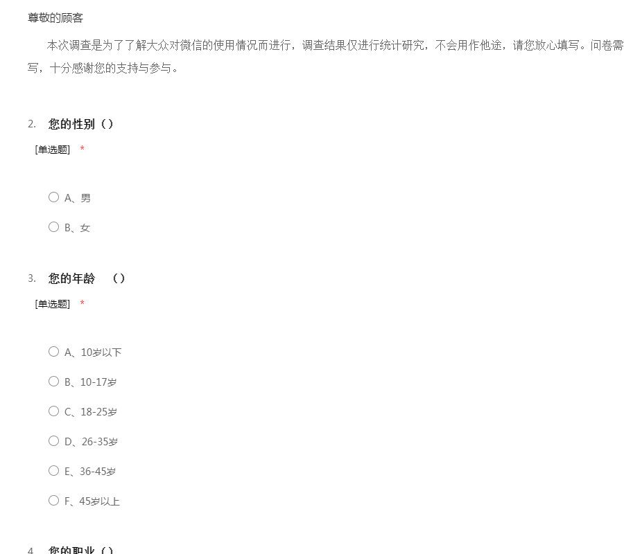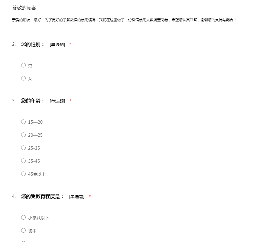 微信使用人数调查问卷