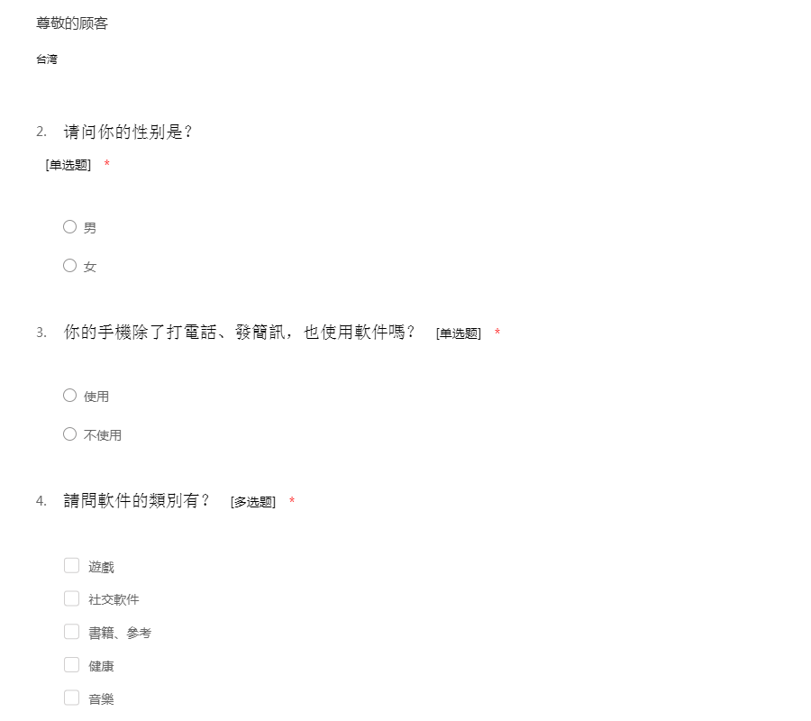 手機社交軟件的調查問卷