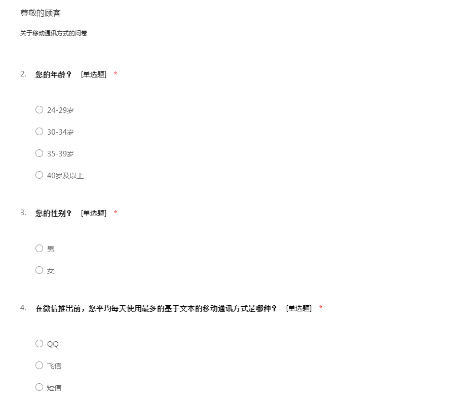 关于移动通讯方式的问卷
