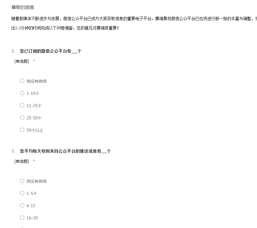 微信公众平台订阅内容调查问卷