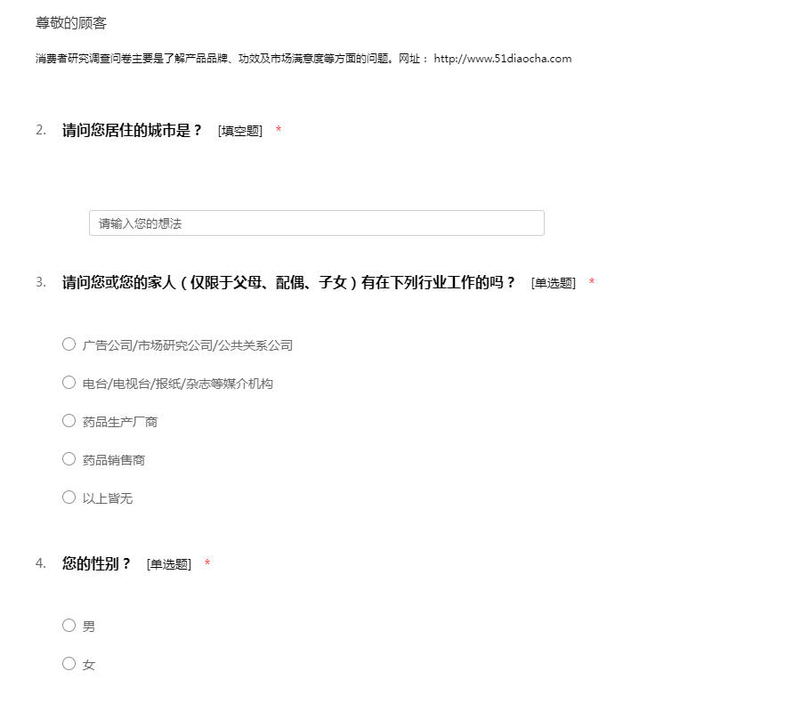 消费者研究调查问卷主要是了解产品品牌、功效及市场满意度等方面的问题。网址: http://www.51diaocha.com