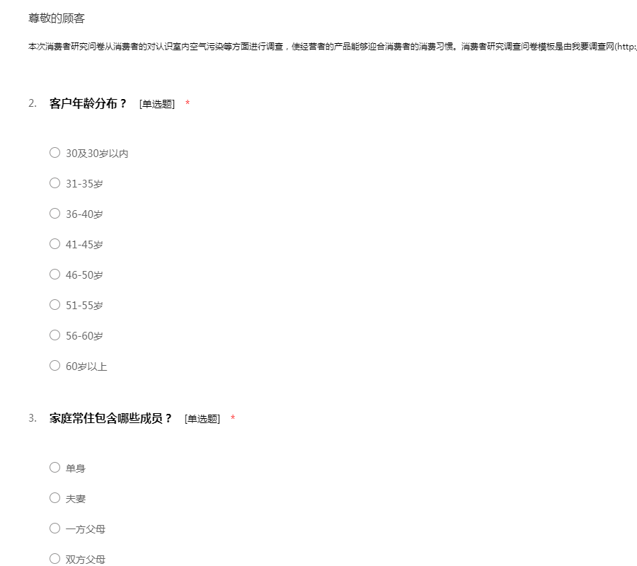 本次消费者研究问卷从消费者的对认识室内空气污染等方面进行调查,使经营者的产品能够迎合消费者的消费习惯。消费者研究调查问卷模板是由我要调查网(http://www.51diaocha.com)提供。
