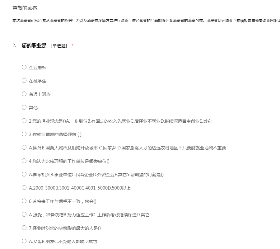 本次消费者研究问卷从消费者的购买行为以及消费态度等方面进行调查,使经营者的产品能够迎合消费者的消费习惯。消费者研究调查问卷模板是由我要调查网(http://www.51diaocha.com)提供。