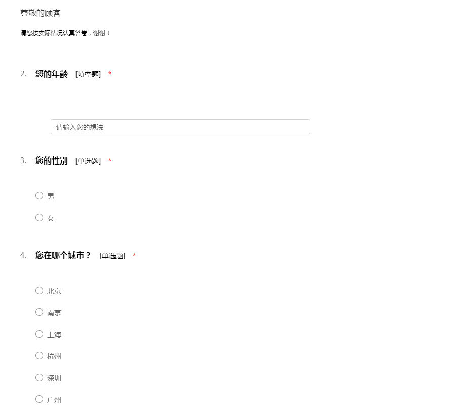 请您按实际情况认真答卷,谢谢!