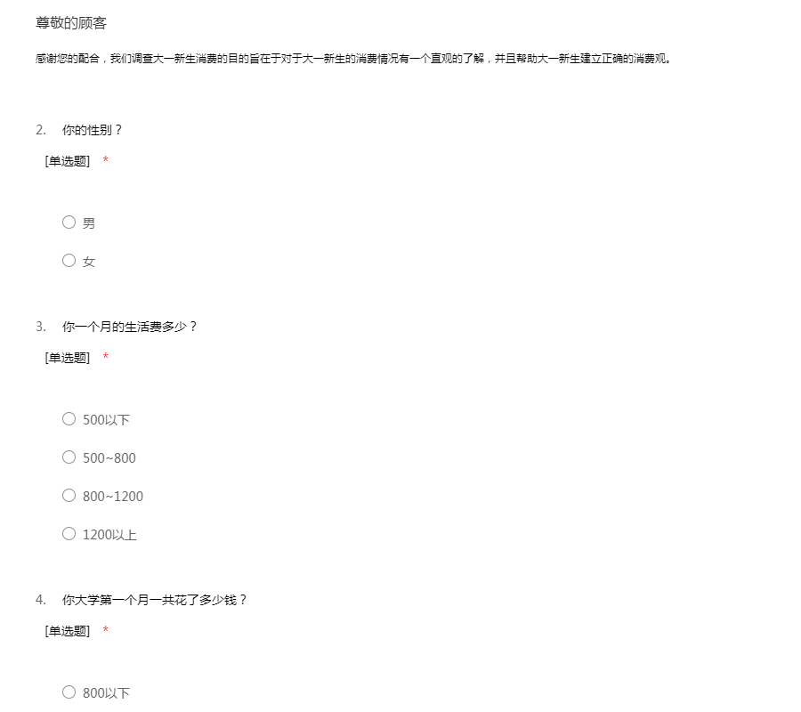 大一新生消费调查问卷