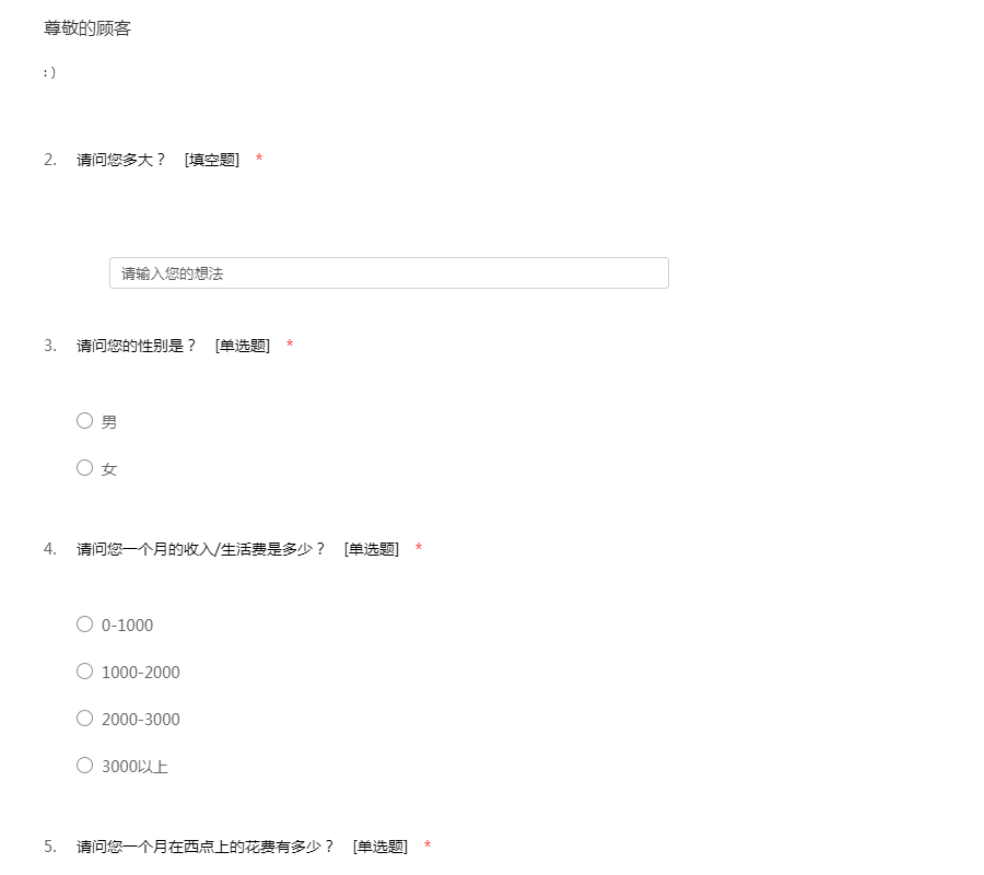 感谢大家抽出时间参加此次调查答卷,现在开始吧