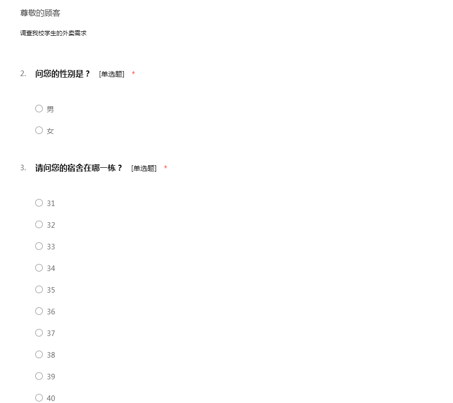 常常觉得食堂不合口味,也吃烦了;市场上又无可靠的品牌外卖,您是否也有同感?为更好地了解你们的需求以便更好地服务大伙,特设计此调查问卷,拜托各位了!