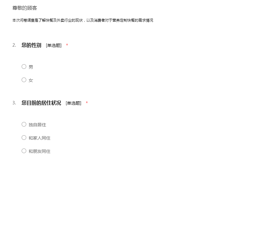 本次问卷调查是了解快餐及外卖行业的现状,以及消费者对于营养定制快餐的需求情况