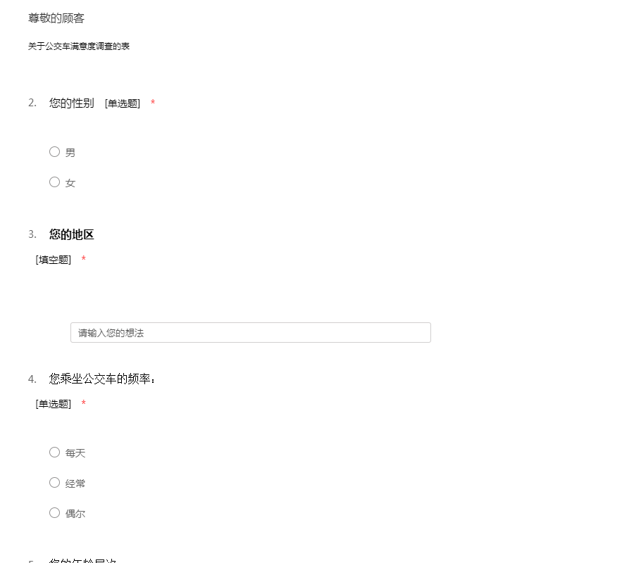 各省公交车满意度调查问卷