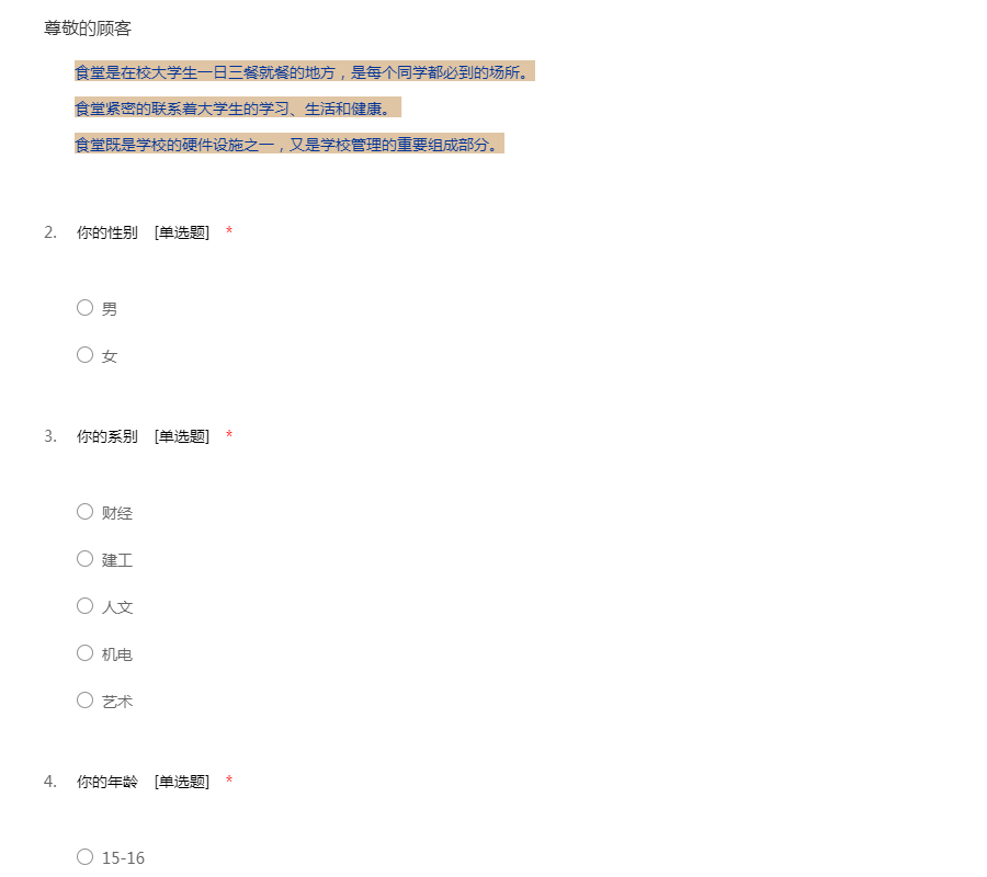 食堂问卷调查