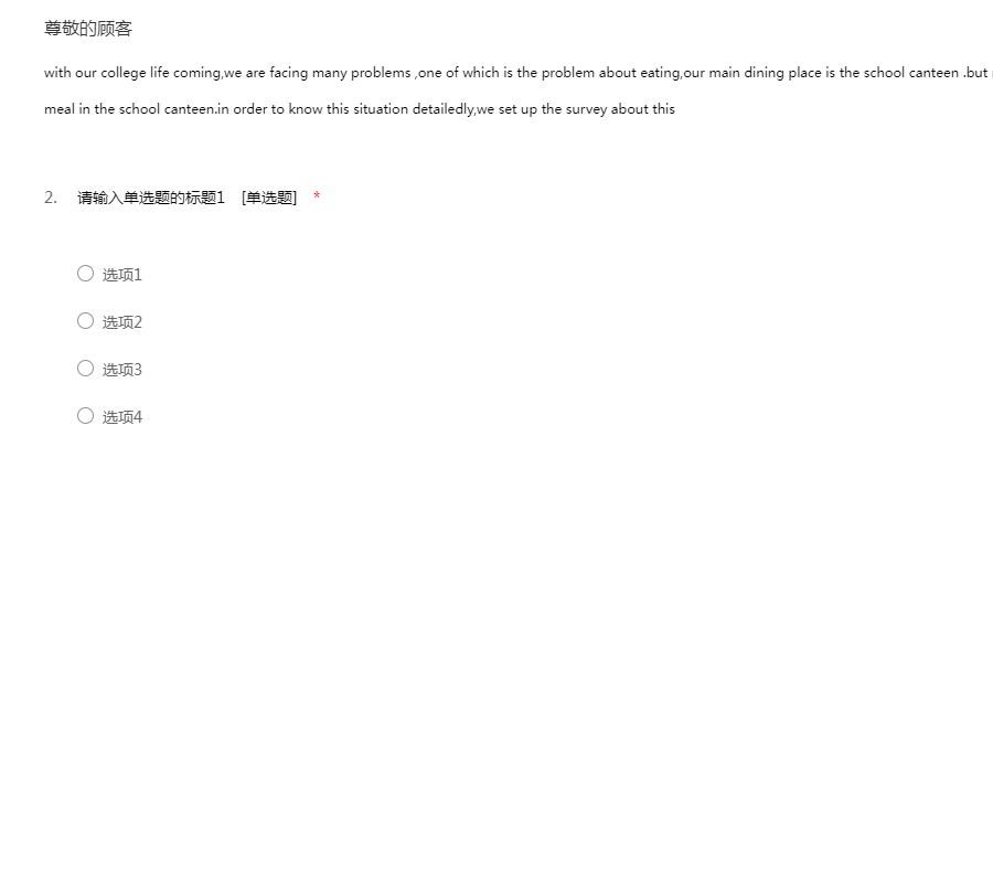 with our college life coming,we are facing many problems ,one of which is the problem about eating,our main dining place is the school canteen .but many students are not satisfied with the meal in the school canteen.in order to know this situation detailedly,we set up the survey about this