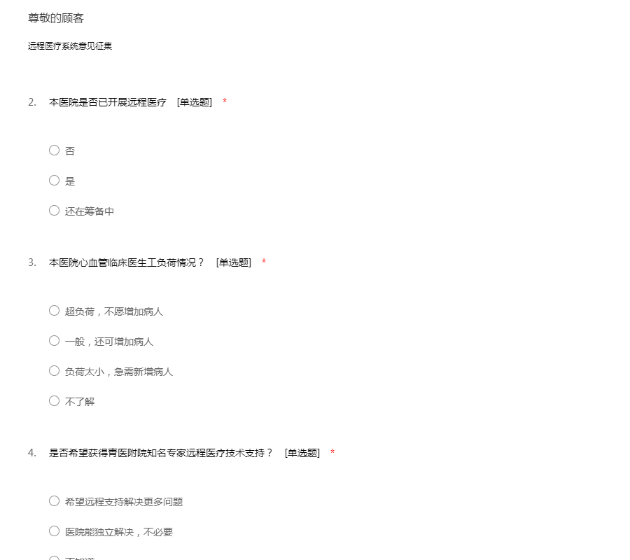 远程医疗系统意见征集