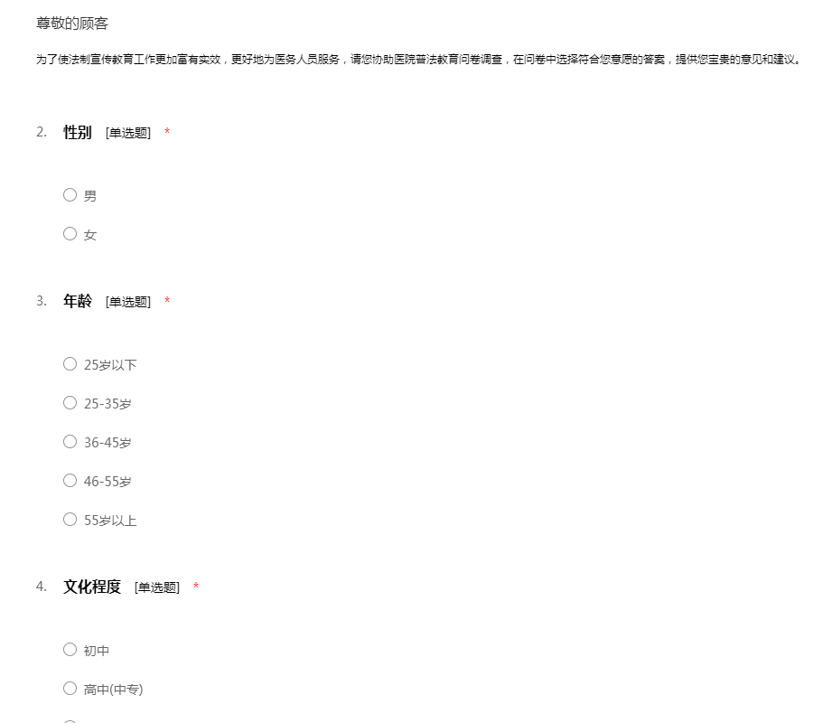 医院普法教育问卷调查