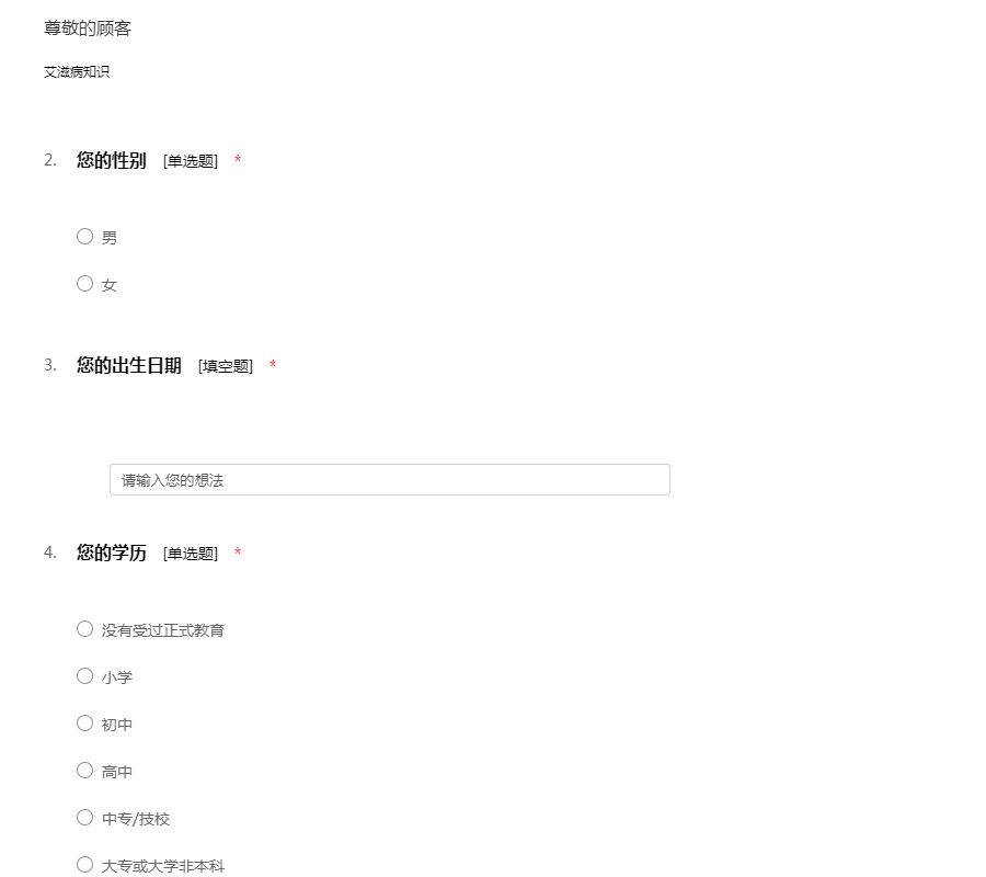 艾滋病健康调查问卷表