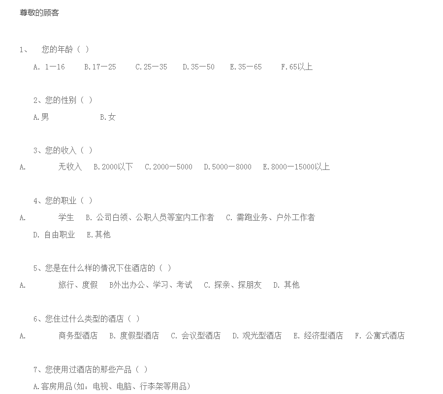 A. 商务型酒店 B. 度假型酒店 C. 会议型酒店 D. 观光型酒店 E. 经济型酒店 F. 公寓式酒店